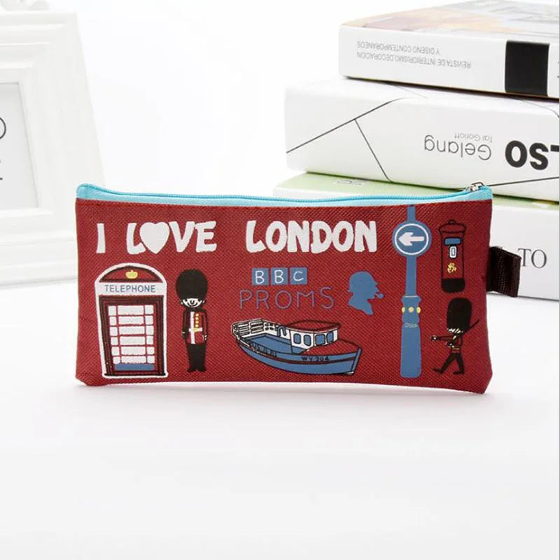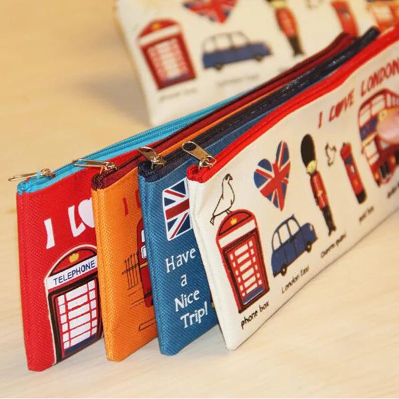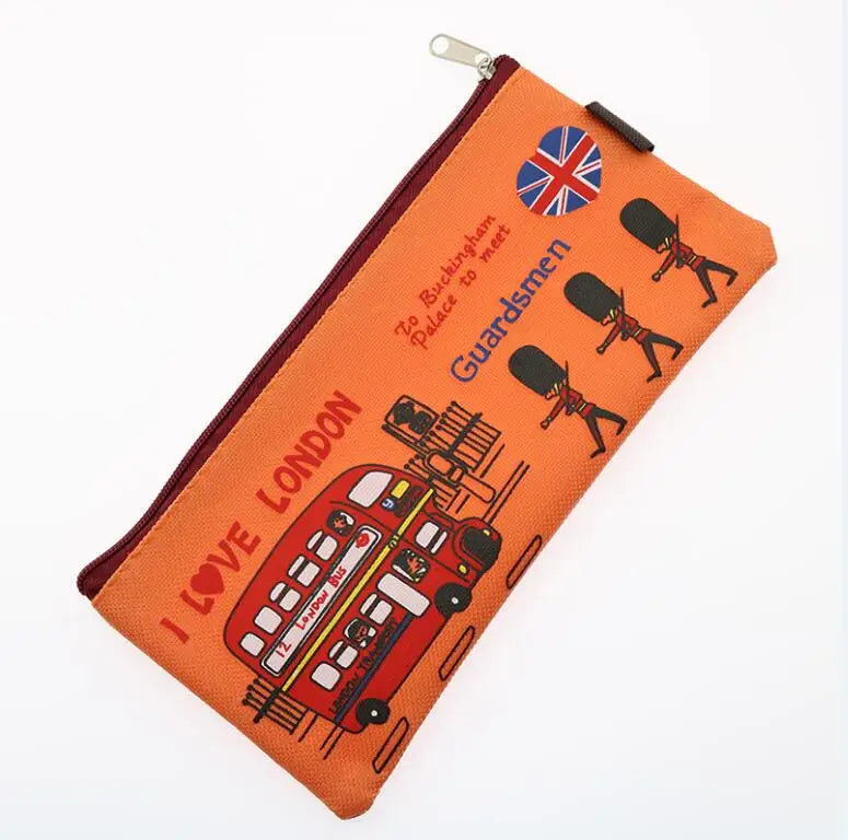 Estojo Oxford com zíper e estampa exótica de Londres para estudantes