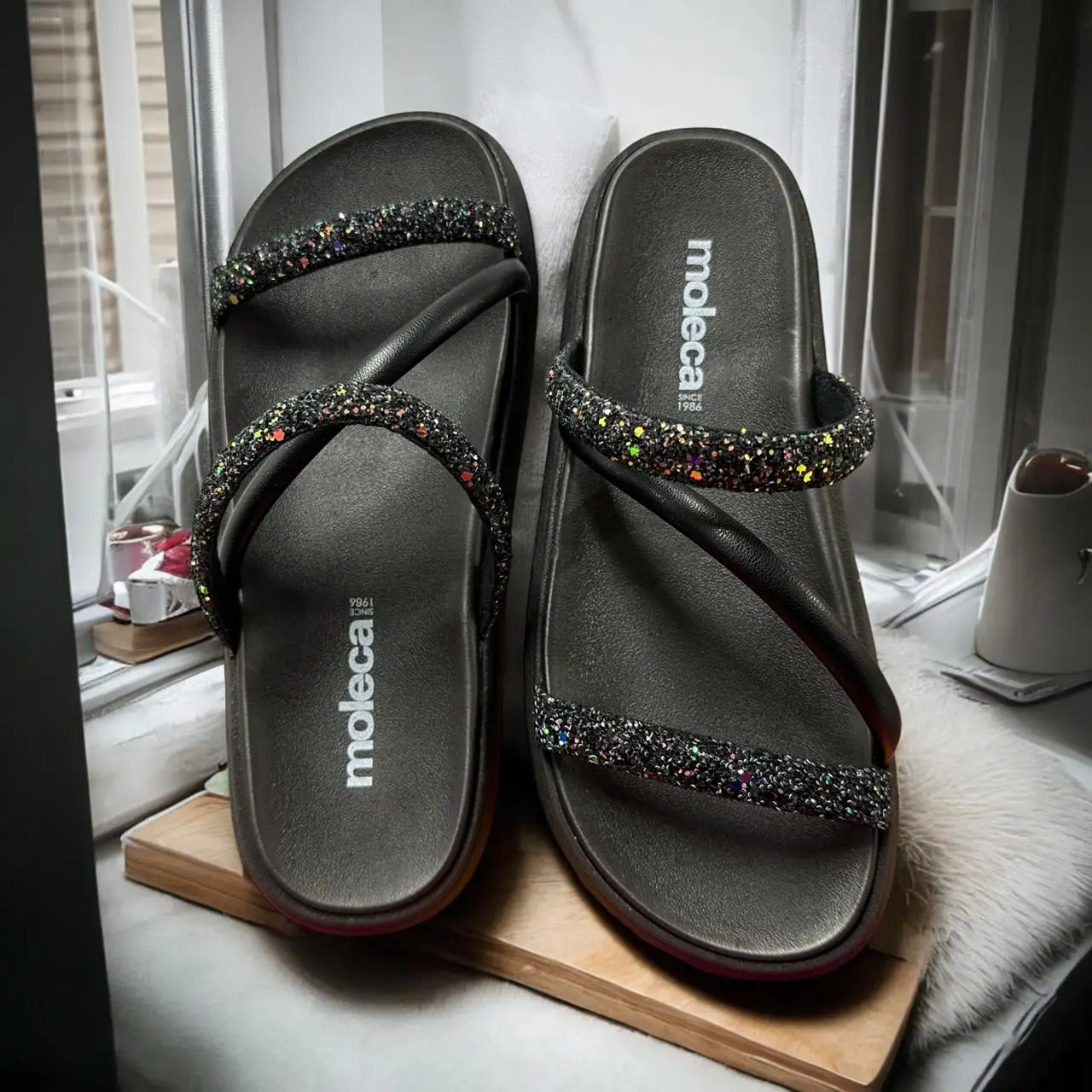 A Sandália Shine Soft Lightweight da Moleca une leveza e conforto em um design moderno e versátil. Com um ajuste prático, ela se adapta perfeitamente aos pés, proporcionando uma experiência agradável a cada passo. Sua estrutura foi pensada para garantir um uso confortável ao longo do dia, sem abrir mão da elegância.